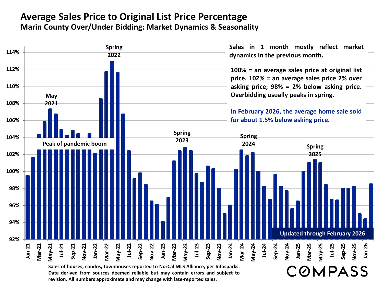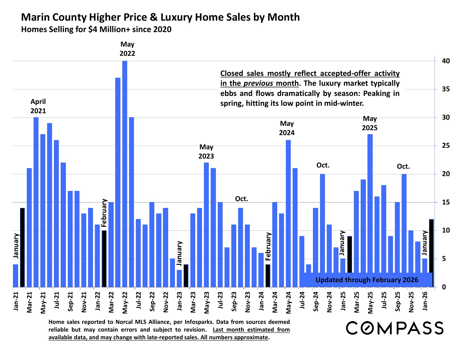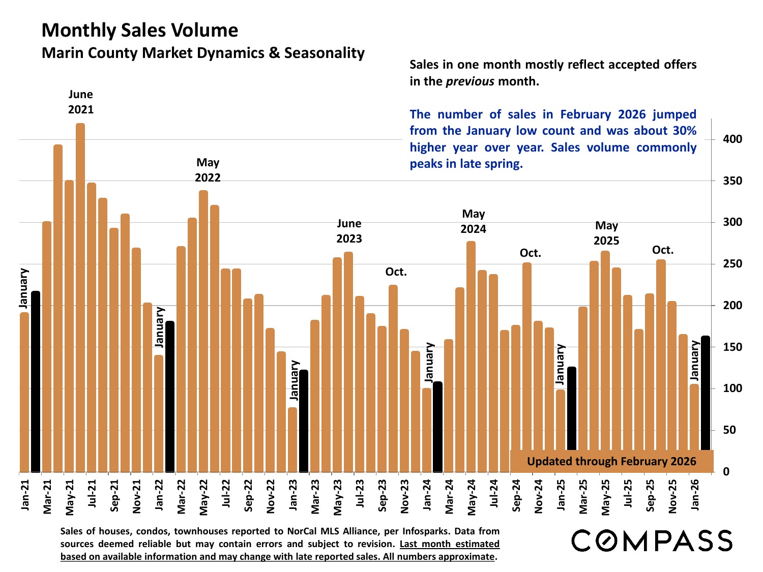 Moving into spring, rising buyer demand vs. an inadequate supply of homes for sale is creating a rapidly heating market characterized by increasing buyer competition, faster sales and more overbidding of asking price. The upcoming months are typically the most active of the year and on current trends, conditions are expected to generate continuing upward pressure on home values. Median home sales prices often hit their calendar-year highs in spring, due to the severe imbalance between supply and demand, as well as a seasonal surge in luxury home sales.